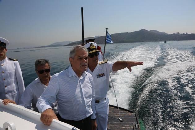 Ο Υφυπουργός Εθνικής Άμυνας Νίκος Τόσκας, συνοδευόμενος από τον Αρχηγό ΓΕΝ Αντιναύαρχο Ευάγγελο Αποστολάκη ΠΝ...