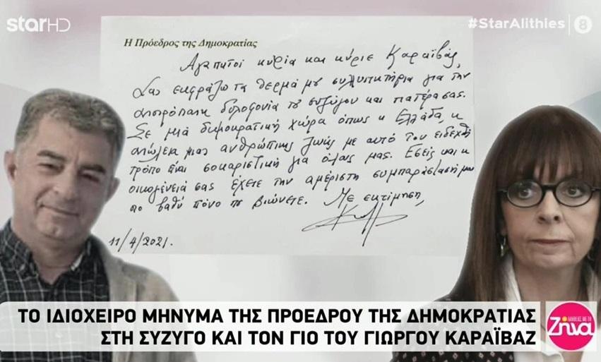 Γιώργος Καραϊβάζ: Ιδιόχειρο σημείωμα έστειλε η Κατερίνα Σακελλαροπούλου στην οικογένεια του δημοσιογράφου Ιδιόχειρο σημείωμα στην οικογένεια του ...