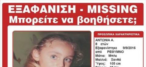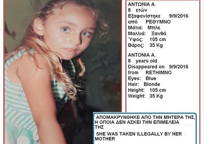 Παρασκευή, 23 Σεπτεμβρίου, 2016 Μία οικογενειακή τραγωδία κρύβεται πίσω από την υπόθεση της 8χρονης Αντωνίας για την οποία εκδόθηκε αναγγελία εξαφάνισης από