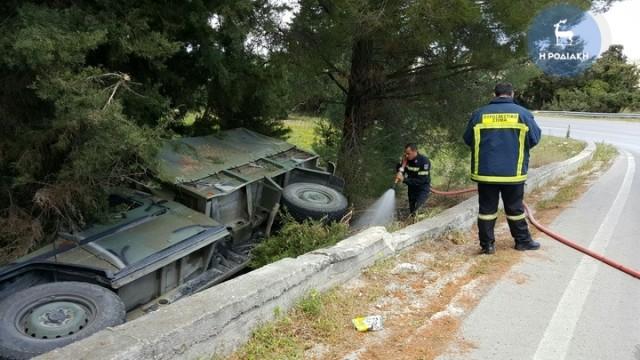 Τροχαίο ατύχημα με ανατροπή στρατιωτικού οχήματος σημειώθηκε πριν απο λίγα λεπτά