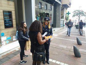 Αστυνομικοί του Γραφείου που εδρεύει στη Γενική Αστυνομική Διεύθυνση Περιφέρειας Ηπείρου στα Γιάννενα, μαζί με την κοινωνική λειτουργό του Συμβουλευτικού Κέντρου Γυναικών Ιωαννίνων Ξένια Κουρή και την ψυχολόγο του Κέντρου Δήμητρα Φαρμάκη, στέλνοντας το μήνυμα της συνεργασίας και του συντονισμού για την αντιμετώπιση της βίας, βρέθηκαν σε κεντρικούς δρόμους των Ιωαννίνων διανέμοντας ενημερωτικό υλικό.