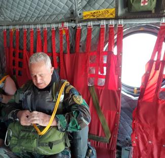 Ακολούθως, ο Αρχηγός ΓΕΕΘΑ συμμετείχε σε προγραμματισμένο άλμα αλεξιπτωτιστού από Ε/Π Chinook CH-47D και σε κατάδυση στην ευρύτερη θαλάσσια περιοχή, με προσωπικό της ΔΥΚ, της Ζ’ ΜΑΚ και του ΕΤΑ.