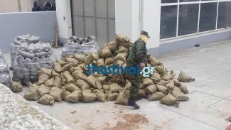 Άνδρες του Τάγματος Εκκαθάρισης Ναρκοπεδίων Ξηράς βρίσκονται αυτή την ώρα στο σημείο όπου εντοπίστηκε η βόμβα στο Κορδελιό προκειμένου να δημιουργήσουν ανάχωμα γύρω από το σκάμμα, στο οποίο βρίσκεται, σε βάθος πέντε μέτρων, η βόμβα, η οποία περιέχει 250 κιλά εκρηκτικών.