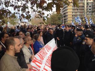 Ένταση επικράτησε κατά τη διάρκεια της παρέλασης στη Θεσσαλονίκη όταν στο ύψος του ξενοδοχείου Μακεδονία Παλάς ομάδα αριστερών επιχείρησε φωνάζοντας συνθήματα να εισέλθει στο οδόστωμα και απωθήθηκε από αστυνομικούς