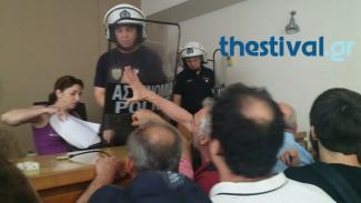 Η Αστυνομία προσπάθησε να απομακρύνει τον διαδηλωτή. Οι υπόλοιπο συγκεντρωμένοι αντέδρασαν με αποτέλεσμα να επικρατήσει για αρκετή ώρα ένταση τόσο στην αίθουσα του Ειρηνοδικείου , όσο και έξω από αυτή, ενώ προς την έδρα πετάχτηκε και μπουκάλι με νερό.