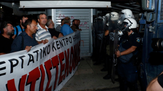 Όταν το μπλοκ των διαδηλωτών έφτασε από το Εργατικό Κέντρο στην πλατεία Ελευθερίας, είδαν τις κλούβες των ΜΑΤ να τους έχουν κλείσει τους δρόμους και να μην τους αφήνουν να κατευθυνθούν προς το σημείο όπου μιλά ο Πρωθυπουργός.