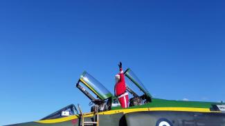 Προσγειώθηκε στην 110 Π.Μ με ένα phantom F4 της Πολεμικής Αεροπορίας το οποίο συνοδευόταν από ένα F-16. Τα μικρά παιδιά περίμεναν με ανυπομονησία το Άγιο οποίος τους μοίρασε καραμέλες και δώρα.