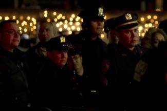 Χιλιάδες άνθρωποι συμμετείχαν την Παρασκευή σε εκκλησία της Νέας Υόρκης σε αγρυπνία ως φόρο τιμής στον έναν από τους δυο αστυνομικούς που σκοτώθηκαν το περασμένο Σαββατοκύριακο, από τα πυρά ενός νεαρού αφροαμερικανού.