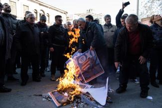 Επιπλέον, κατέβασαν τις σημαίες του κόμματος και τις έκαψαν μαζί με τις αφίσες για τις συγκεντρώσεις υπέρ του «ΟΧΙ». Στη θέση των σημαιών του ΣΥΡΙΖΑ, έβαλαν ελληνικές σημαίες.