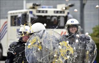 Περισσότεροι από 5.000 ευρωπαίοι αγρότες και γαλακτοπαραγωγοί με περίπου 1.000 τρακτέρ βγήκαν σήμερα στους δρόμους των Βρυξελλών για να ασκήσουν με αυτό τον τρόπο πιέσεις στις αρχές της ΕΕ να στηρίξουν οικονομικά τους παραγωγούς, οι οποίοι βρίσκονται στο χείλος της χρεοκοπίας. Οι αγρότες πέταξαν προς το μέρος των αστυνομικών δυνάμεων μέχρι και ... αυγά.
