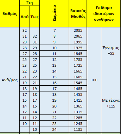 Το αποτέλεσμα της πρόσθεσης του νέου βασικού και του επιδόματος ιδιαίτερων συνθηκών που αναλογεί στον καθένα βάσει ετών υπηρεσίας και του βαθμού που έχει αποτελούν το σύνολο των μικτών μηνιαίων αποδοχών.