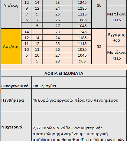 Στις παραπάνω αποδοχές πρέπει να προσθέσετε όσοι λαμβάνετε τα πενθήμερα τα νυχτερινά ,τα επιδόματα κινδύνου και αναπηρίας η όποιο επίδομα από αυτά που αναφέρουμε παρακάτω εφόσον το δικαιούστε.