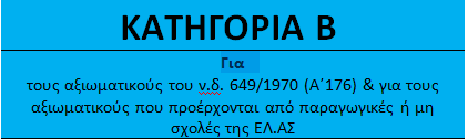 Στην κατηγορία Β΄, στην οποία υπάρχουν 28 μισθολογικά κλιμάκια κατατάσσονται οι αξιωματικοί του ν.δ. 649/1970, οι υπαξιωματικοί, ανθυπαστυνόμοι και οι αξιωματικοί που προέρχονται από παραγωγικές ή μη σχολές της Ελληνικής Αστυνομίας.