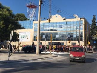 Οι αναρχικοί κρατώντας ένα πανό στο οποίο γράφει "Ο κρατικός ολοκληρωτισμός χτίζει σύνορα και φράχτες η αλληλεγγύη τα γκρεμίζει", έχουν αποκλείσει την είσοδο της ΕΡΤ.