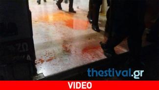 Άτομα που συμμετείχαν στην πορεία πέταξαν μπογιές τόσο στην είσοδο των γραφείων του ΣΥΡΙΖΑ Θεσσαλονίκης, όσο και σε διμοιρίες των ΜΑΤ που βρίσκονταν στο σημείο.