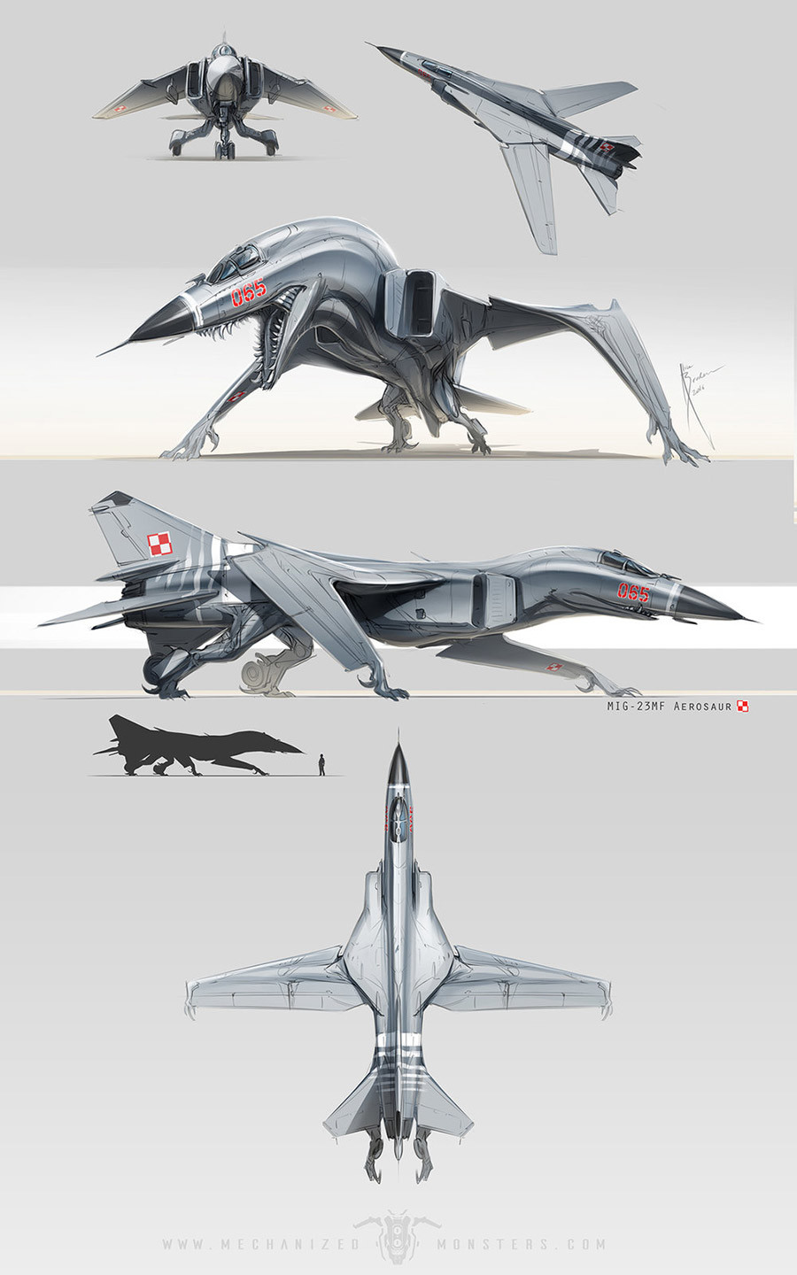 Η Bruderer, που δημοσίευσε τις φωτογραφίες της στο διαδίκτυο με το ψευδώνυμο «Hydrothrax», φαίνεται να ενδιαφέρεται για στρατιωτικό υλικό και την ρωσική αεροπορία ειδικότερα. Σε μια εντυπωσιακή εικόνα μετέτρεψε τρία Sukhoi SU-47, SU-33 και SU-34 μαχητικά αεροσκάφη σε "areosaurs», τα οποία συνδυάζουν τα χαρακτηριστικά των δύο σύγχρονων αεροσκαφών και τα προϊστορικά τέρατα.