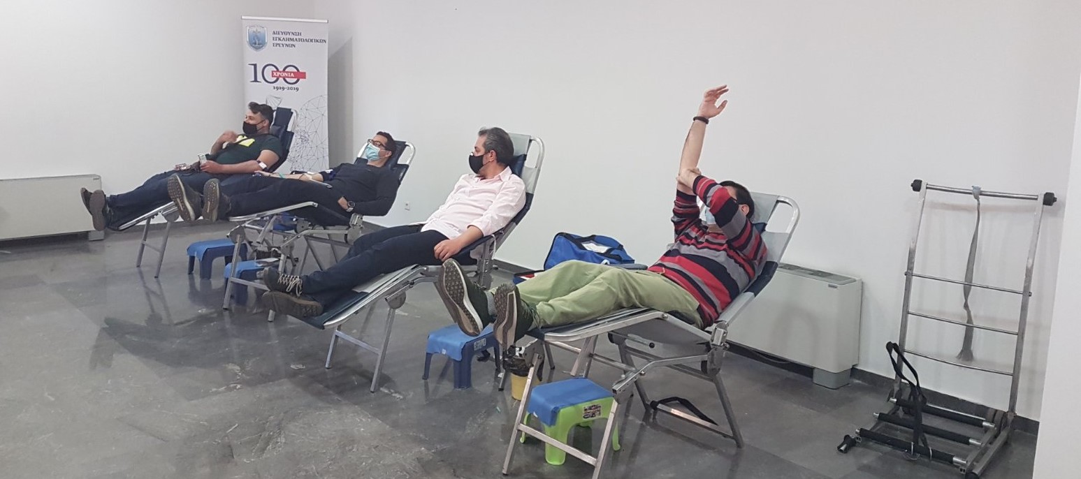 Πρέπει επίσης να γνωρίζουν οι συνάδελφοι ότι η Ένωσή μας διατηρεί τράπεζα αίματος στο νοσοκομείο «ΣΩΤΗΡΙΑ» στο κτίριο αιμοληψίας, στο οποίο μπορεί όποιος συνάδελφος επιθυμεί να δώσει αίμα, να μεταβεί κατά τις ώρες 08:00-14:00, ή σε οποιοδήποτε άλλο νοσοκομείο που διαθέτει μονάδα αιμοληψίας, αναφέροντας τον υπ’ αριθ. 11894 αριθμό μητρώου της τράπεζας αίματος της Ένωσής μας και δηλώνοντας ότι επιθυμεί να δώσει αίμα για τη συγκεκριμένη τράπεζα αίματος. Να τονίσουμε ότι και σε αυτή την αιμοδοσία τηρήθηκαν όλα τα προβλεπόμενα από τον Ε.Ο.Δ.Υ. υγειονομικά πρωτόκολλα για την αποτροπή διασποράς της πανδημίας, την τήρηση των οποίων επιμελήθηκαν μέλη του Δ.Σ. της Ένωσης και εκλεγμένοι αντιπρόσωποι, που υπηρετούν στη συγκεκριμένη Διεύθυνση.
