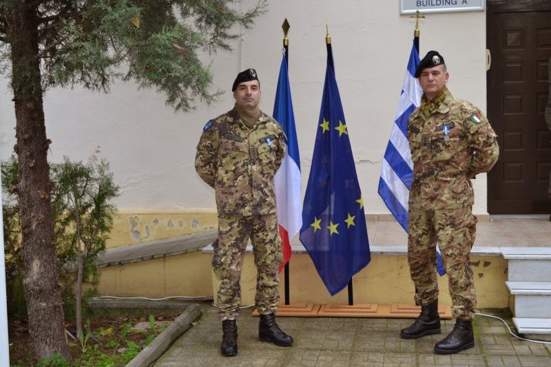 Εξήντα τρεις στρατιωτικοί, διαφόρων εθνικοτήτων, που υπηρετούν στο Ελληνικό Στρατηγείο Επιχειρήσεων Ευρωπαϊκής Ένωσης (ΕΣΕΕΕ) στη Λάρισα, τιμήθηκαν χτες με το μετάλλιο της Ευρωπαϊκής Ένωσης "Common Security and Defense Policy Service Medal", για τη συμμετοχή τους στη στρατιωτική επιχείρηση της Ευρωπαϊκής Ένωσης στην Κεντροαφρικανική Δημοκρατία.