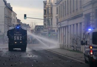 Η γερμανική αστυνομία έκανε χρήση αντλιών νερού υπό πίεση για να απωθήσει αριστερούς διαδηλωτές, οι οποίοι έριχναν πέτρες και προσπάθησαν να εμποδίσουν να πραγματοποιηθεί μια πορεία νεοναζί στη Λειψία το Σάββατο (12/12).