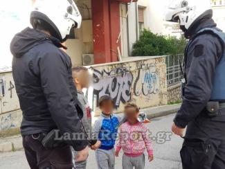 Όπως ήταν φυσικό κάποιοι από αυτούς ενημέρωσαν την Άμεση Δράση "100" και αμέσως αστυνομικοί της ΔΙ.ΑΣ. κινητοποιήθηκαν και εντόπισαν τα αδελφάκια κοντά στο Δημοτικό Θέατρο Λαμίας.