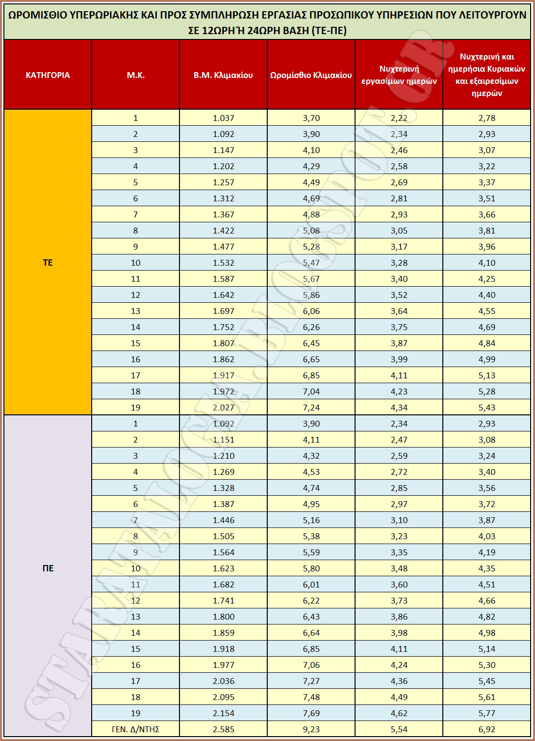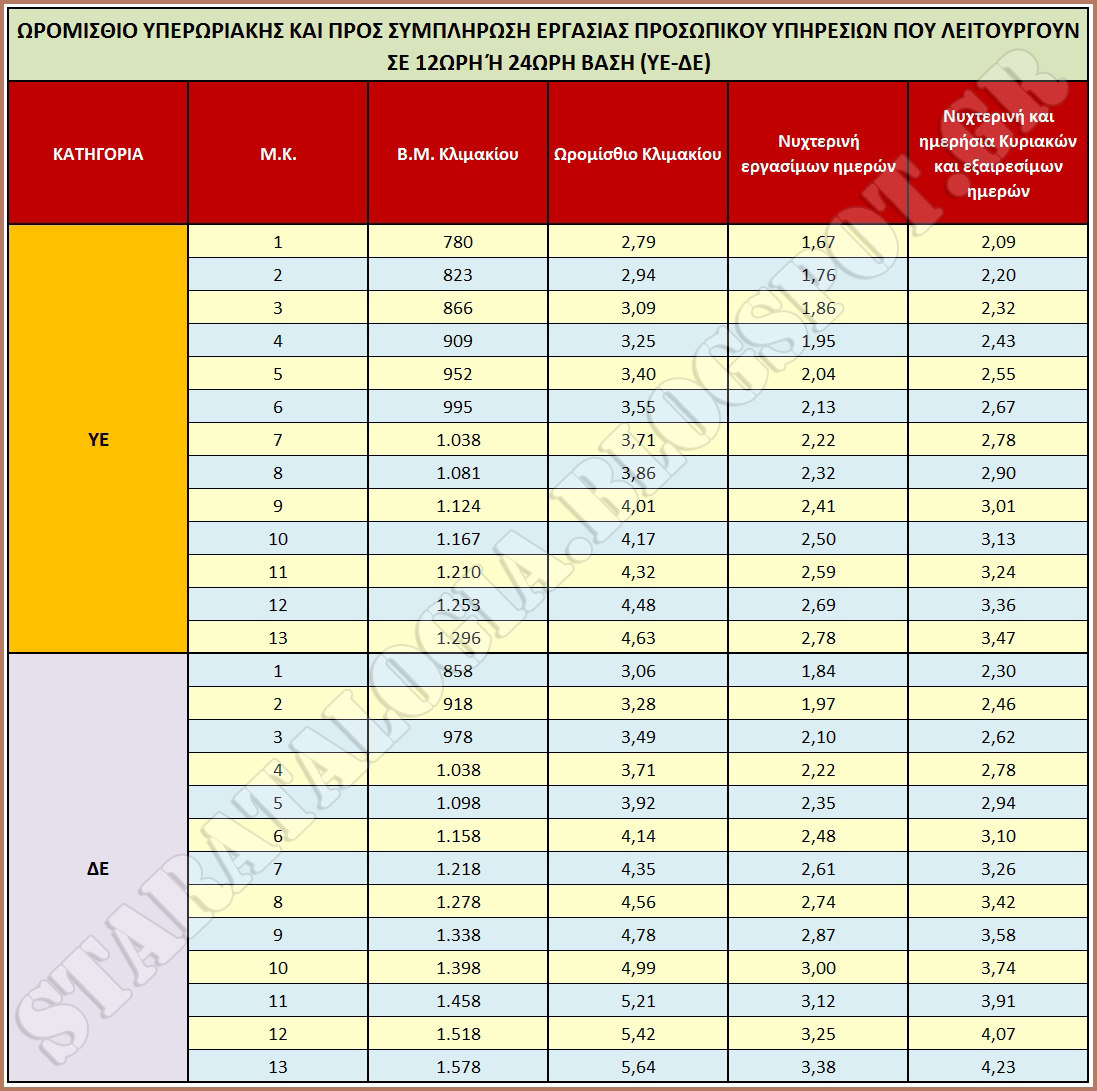 ► Η ωριαία αποζημίωση που χορηγείται για εργασία νυχτερινή εργάσιμων ημερών σε δημόσιες υπηρεσίες που λειτουργούν είτε όλες τις ημέρες του μήνα είτε σε δωδεκάωρη ή εικοσιτετράωρη βάση αυξάνεται κατά 50%, από το 40% στο 60% του ωρομισθίου.
