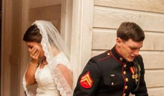 Ωστόσο η συγκεκριμένη φωτογραφία εχει αγγίξει τις καρδιές χιλιάδων ανθρώπων γιατι ο Κάλεμπ Ίαργουντ του Σώματος Πεζοναυτών των ΗΠΑ και η αρραβωνιαστικιά του Μάγκι,στάθηκαν με τα μάτια κλειστά και την πλάτη γυρισμένη και προσευχήθηκαν πριν ενωθούν με τα δεσμά του γάμου.