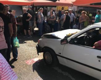 Η παραγωγός στον πάγκο της οποίας προσέκρουσε το αυτοκίνητο σώθηκε από πραγματική τύχη. Μετά το σοκαριστικό ατύχημα, όπως φαίνεται στο παραπάνω βίντεο, κάθεται σαστισμένη σε μια καρέκλα προσπαθώντας να καταλάβει τι έχει συμβεί. «Σώθηκε από θαύμα», λέει αυτόπτης μάρτυρας μιλώντας στο Open.