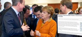 Οι αρχηγοί των κρατών και των κυβερνήσεων συμφώνησαν επίσης ότι χρειάζονται γενναίες κινήσεις για να κλείσουν οι διαδρομές της παράνομης διακίνησης ανθρώπων και να καταπολεμηθεί το επιχειρηματικό μοντέλο των διακινητών, να προστατέψουμε τα εξωτερικά μας σύνορα και να τερματίσουμε την κρίση στην Ευρώπη. Πρέπει να σπάσει ο δεσμός μεταξύ της εισόδου σε ένα πλοίο και της εγκατάστασης στην Ευρώπη.