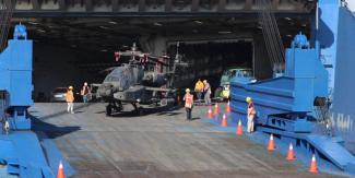 Οι αμερικανικές ένοπλες δυνάμεις έδωσαν στη δημοσιότητα βίντεο που καταγράφει την εκφόρτωση των ελικοπτέρων, που έφτασαν στο λιμάνι του Βόλου το απόγευμα της Παρασκευής, με μεγάλο πλοίο υπό αμερικανική σημαία.