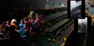 Στο κατάστρωμα βρίσκονται μετανάστες μαζί με άτομα που δεν μοιάζουν με πρόσφυγες αλλά με πλήρωμα. Τα βίντεο γυρίστηκαν πριν την προσάραξη του πλοίου στην Τζια, με σκοπό να «διαφημιστούν» από τους δουλέμπορους τα επόμενα ταξίδια με φορτηγά πλοία.