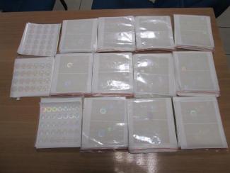Όπως διαπιστώθηκε, το εσωτερικό του δέματος περιείχε, συνολικά 6.857 διαφανείς μεμβράνες αμφιβόλου γνησιότητας, από τις οποίες στις 4.408 εμφαίνονταν οπτικά μεταβαλλόμενες παραστάσεις, όμοιες, με αυτές των γνησίων διαβατηρίων Βουλγαρίας, στις 1.225 εμφαίνονταν οπτικά μεταβαλλόμενες παραστάσεις, που απεικονίζουν το θυρεό της Βουλγαρίας και στις 1.224 εμφαίνονταν οπτικά μεταβαλλόμενες παραστάσεις, που απεικονίζουν το χάρτη και το θυρεό της Βουλγαρίας.