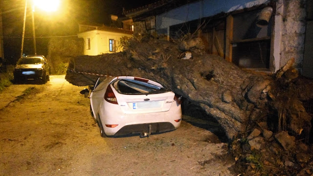 Αναταραχή προκλήθηκε στην Πέτρα Λέσβου το μεσημέρι της Παρασκευής όταν ένα μεγάλο γέρικο δέντρο αποκολλήθηκε ξαφνικά από τη ρίζα και έπεσε στο έδαφος, πλακώνοντας ένα όχημα που βρισκόταν παρκαρισμένο από κάτω.