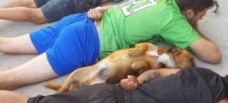 Το περιστατικό έλαβε χώρα στη Βραζιλία, όπου οι αστυνομικοί έκαναν έφοδο σε υπόπτους για κατοχή ναρκωτικών. Τους ακινητοποίησαν και τους έβαλαν να ξαπλώσουν στο έδαφος, ενώ, ακριβώς η ίδια διαδικασία ακολουθήθηκε και για το τετράποδο «μέλος» της συμμορίας.