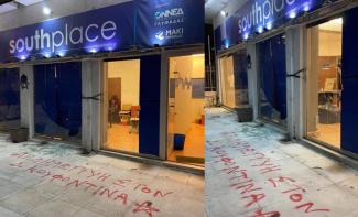 Οι άγνωστοι έσπασαν την τζαμαρία και έγραψαν συνθήματα υπέρ του Δημήτρη Κουφοντίνα στους τοίχους.