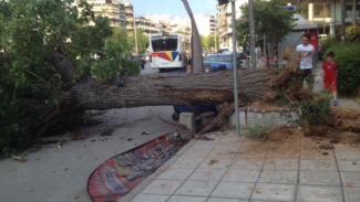 Προς στιγμή επικράτησε πανικός αλλά όπως διαπιστώθηκε ευτυχώς δεν τραυματίστηκε κανένας από τους επιβάτες. Στο σημείο πυροσβέστες προκειμένου να απομακρύνουν το δέντρο από το οδόστρωμα.