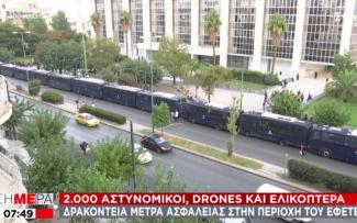 Περισσότεροι από 2.000 αστυνομικοί θα συμμετέχουν, ώστε να αποφευχθούν τυχόν επεισόδια, ενώ πάνω από την περιοχή θα πετούν συνεχώς ελικόπτερο καθώς και drone της ΕΛΑΣ, τα οποία θα δίνουν την εικόνα της κατάστασης που θα επικρατεί στο Κέντρο Επιχειρήσεων.