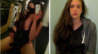 Η Caitlin τράβηξε αυτό το γεμάτο υπονοούμενα και... σαδο-καλάσνικοφ (btsm επί το αγγλικότερον...) selfie για να κάνει εντύπωση στους ακόλουθούς της. Όμως η φωτογραφία αυτή προφανώς δεν θα μπορούσε περάσει απαρατήρητη από τα «λαγωνικά» των social media, πολύ δε περισσότερο από την αστυνομία.