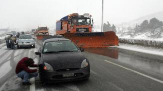 Ακόμη, έχει διακοπεί η κυκλοφορία στην εθνική οδό Τρίπολης- Σπάρτης, από το 14ο χιλιόμετρο στο ύψος της Μανθυρέας, λόγω έντονης χιονόπτωσης, ενώ αρκετά αυτοκίνητα έχουν σταματήσει στην άκρη του δρόμου.