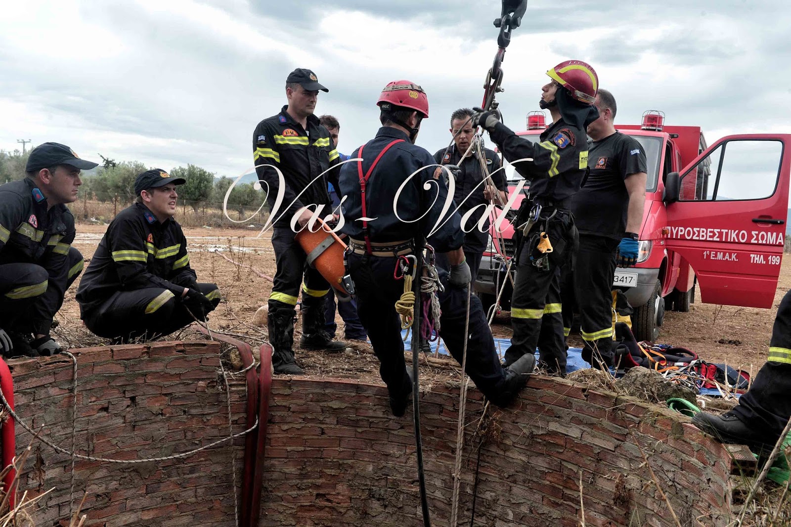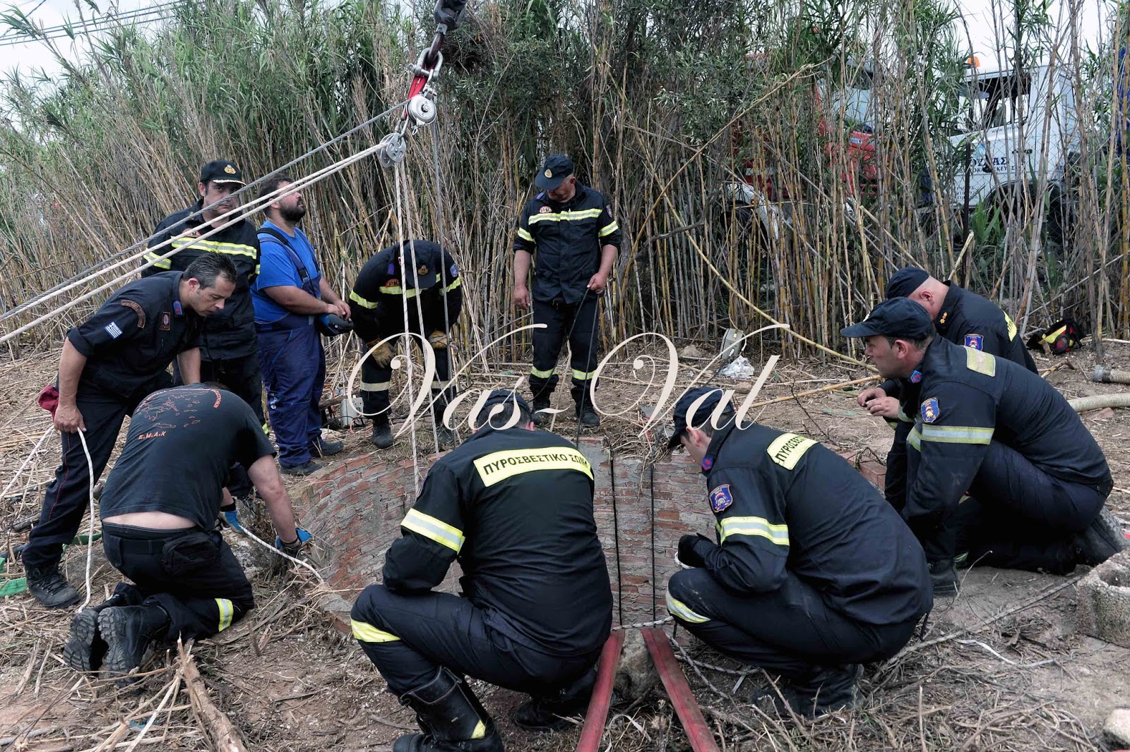 Για τον απεγκλωβισμό του χρειάστηκε η συνδρομή πυροσβεστών και άνδρες της ΕΜΑΚ οι οποίοι κατάφεραν να το ανεβάσουν με σχοινιά και γερανοφόρο όχημα, σε μια επιχείρηση που διήρκεσε περισσότερο από τρεις ώρες.