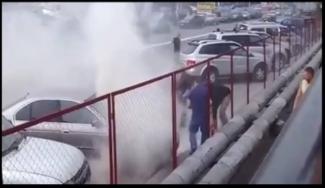 Το βίντεο καταγράφει τις δραματικές στιγμές όπου οι αστυνομικοί προσπαθούν να βγάλουν τη γυναίκα από το αυτοκίνητο, οι πόρτες του οποίου δεν άνοιγαν μετά τη σύγκρουση.
