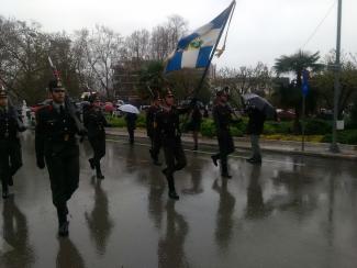 Υπό Καταρρακτώδη βροχή οι Αετοί της ΣΜΥ Σπουδαστές και Σπουδάστριες της Σχολής Μονίμων Υπαξιωματικών αρνήθηκαν να ματαιώσουν την Παρέλαση που είχε προταθεί και παρέλασαν στο Κέντρο της Πόλεως των Τρικάλων ..Παρασέρνοντας και τους Μαθητές όλων των σχολείων και που παρέλασαν άπαντες με Υπερηφάνεια !
