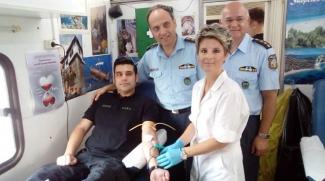 Εθελοντική αιμοδοσία πραγματοποιήθηκε σήμερα στον προαύλιο χώρο της Διεύθυνσης Αστυνομίας Μαγνησίας, στο πλαίσιο των εκδηλώσεων για τον εορτασμό του προστάτη της Αστυνομίας, Αγίου Αρτεμίου.