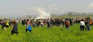 Καθώς δεν υπήρξε ανταπόκριση στο αίτημα, περίπου 500 πρόσφυγες κινήθηκαν προς τον φράκτη, εξωτερικά των σιδηροδρομικών γραμμών και ακολούθησε διαμαρτυρία, ενώ από την πλευρά της αστυνομικών αρχών της ΠΓΔΜ ξεκίνησε η ρίψη δακρυγόνων.