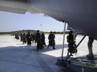 Η δραστηριότητα περιέλαβε εκτέλεση αλμάτων στατικού ιμάντα από αεροσκάφος C-130 των ΗΠΑ.