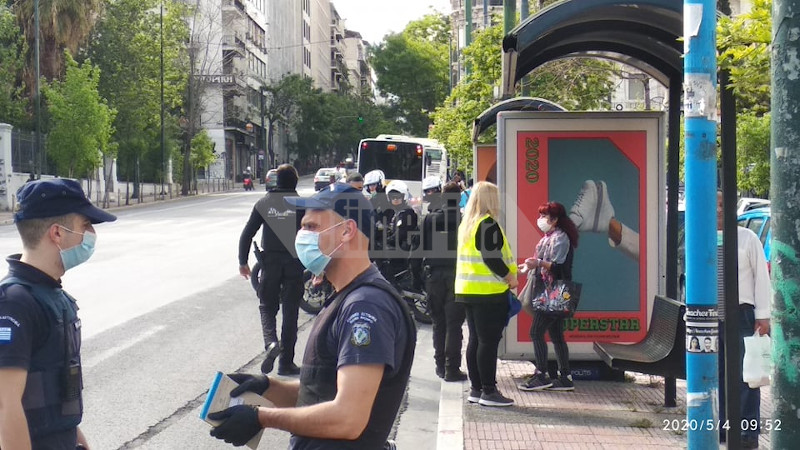 Από νωρίς στους δρόμους της Αθήνας άνδρες της Ελληνικής Αστυνομίας βρίσκονται σε στάσεις λεωφορείων και τρόλεϊ και σε κεντρικά σημεία της πρωτεύουσας προκειμένου να διαπιστώσουν εάν οι πολίτες τηρούν τα απαραίτητα μέτρα ασφαλείας. Μπορεί η πρώτη εβδομάδα να είναι ουσιαστικά πιλοτική μέχρι το επιβατικό κοινό να προσαρμοστεί στη νέα κανονικότητα, ωστόσο τα πρόστιμα βρίσκονται σε πλήρη ισχύ για τους παραβάτες που δεν συμμορφώνονται.