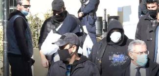 Με χειροπέδες στα χέρια μάσκες για τον κορωνοϊό και κουκούλες για να κρύψουν τα χαρακτηριστικά τους, οι δύο κατηγορούμενοι για το σοβαρό τραυματισμό 32χρονου πρώην μποξέρ στο Περιστέρι με πυροβολισμούς και χτυπήματα στο κεφάλι, βγαίνουν από τα δικαστήρια της πρώην σχολής Ευελπίδων.