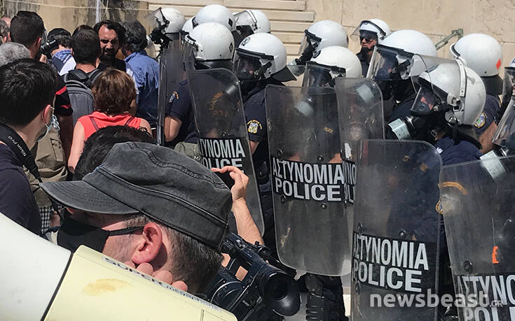 Μικρής έκτασης ένταση σημειώθηκε το μεσημέρι της Τετάρτης (13/5) έξω από το Βουλή κατά τη διάρκεια του πανεκπαιδευτικού συλλαλητηρίου.
