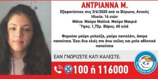 Στην περιοχή του Βύρωνα έχει σημάνει συναγερμός για την εξαφάνιση της 14χρονης Αντριάννας. Το «Χαμόγελο του Παιδιού» εξέδωσε ανακοίνωση στην οποία αναφέρει τα εξής: Στις 3/6/2020, πρωινές ώρες, εξαφανίστηκε από την περιοχή του Βύρωνα Αττικής, η Αντριάννα Μ., 14 ετών, ρουμανικής καταγωγής.