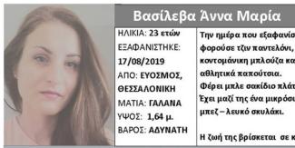 Σύμφωνα με τη Γραμμή Ζωής, η Βασίλεβα Άννα Μαρία εξαφανίστηκε στις 17 Αυγούστου.