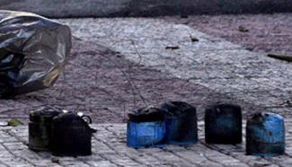 Η κροτίδα έσκασε ενώ άτομα που βρίσκονταν στο χώρο πρόλαβαν να απομακρύνουν τα γκαζάκια και να τα πετάξουν.